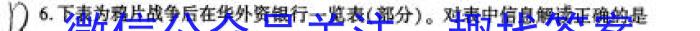 6.下表为鸦片战争后在华外资银行一览表(部分)。对表中信息解读正确的是A.顺应了资本输出的历史趋势B.表明英法成为侵华急先锋C.香港、上海是列强侵华中心D.病应了对华贸易增长的需要