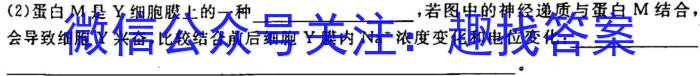 (2)蛋白M是Y细胞膜上的一种,若图中的神经递质与蛋白M结合,会导致细胞Y兴奋,比较结合前后细胞Y膜内Na^+浓度变化和电位变化: