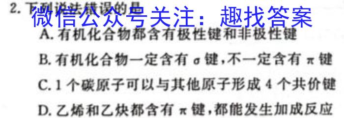 2.下列说法错误的是A.有机化合物都含有极性键和非极性键B.有机化合物一定含有a键,不一定含有π键C.1个碳原子可以与其他原子形成4个共价键D.乙烯和乙炔都含有π键,都能发生加成反应