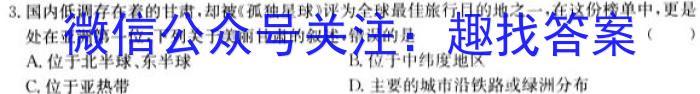 3.国内低调存在着的甘肃,却被(孤独星球》评为全球最佳旅行目的地之一,在这份榜单中,更是处在亚洲第一位,下列关于美丽甘肃的叙述,错误的是()A.位于北半球、东半球B.位于中纬度地区C.位于亚热带D.主要的城市沿铁路或绿洲分布
