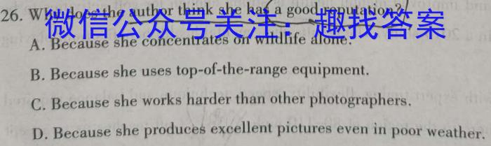 26.Why does the author think she has a good reputationA.Because she concentrates on wildlife alone.B. Because she use s top-of-the-range equipment.C. Because she works harder than other photographers.D. Because she produces excellent pictures even in poor weather