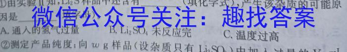 ①由实验Ⅱ知,Li2S样品中还含有(填化学式),产生该杂质的可能原因是(填字母)。A.通人的氢气过量B.Li2SO4未反未反应完C.温度过高