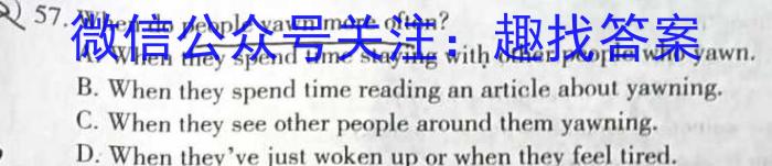 57.When do people yawn more often?A.When they spend time staying with other people who yawn.B.When they spend time reading an article about yawning.C.When they see other people around them yawning.D.When they’ve just woken up or when they feel tired.