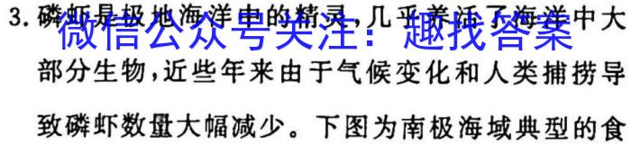 3.磷虾是极地海洋中的精灵,几乎养活了海洋中大部分生物,近些年来由于气候变化和人类捕捞导致磷虾数量大幅减少。下图为南极海域典型的食物网,下列分析错误的是A.磷虾、须鲸、鱿鱼、阿德利企鹅等生物之间建立起以营养关系为纽带的食物网B.福克兰群岛的居民大量捕捞须鲸,一段时间后磷虾数量将增多C.海洋生态系统短时期内有机物积累量高于陆地生态系统D.应对气候变化和过度捕捞导致磷虾大量减少的现状,可利用种间关系发展生物防治技术,以减少对南极洲海域生态的影响