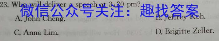 23. Who will deliver a speech at 3:20 pm?A.John Cheng.B.Jeffrey Koh.C.Anna Lim. D.Brigitte Zeller.