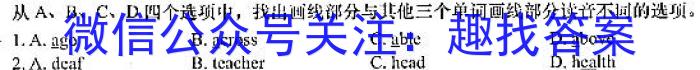 从A、B、C、D四个选项中,找出画线部分与其他三个单词画线部分读音不同的选项。1.A.ago B.across C.able D.above2.A.dcaf B.t cacher C.head D.health