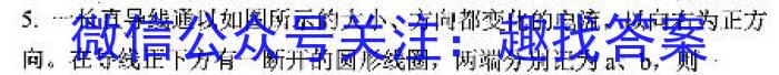 5.…长直导线通以如图所示的大小、方向都变化的电流,以向右为正方向。在导线正下方有一断开的圆形线圈,两端分别记为a、b,则A.时刻a点电势最高B.t时刻a点电势最高C.t3时刻a点电势最高D.t时刻a点电势最高