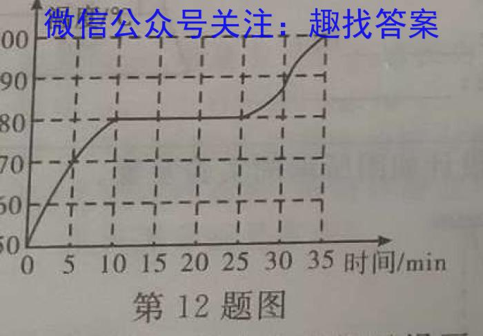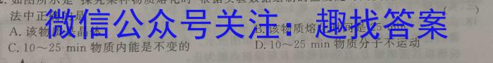 12.如图所示是“探究某种物质熔化时”根据实验数据绘制的温度随时间变化的图像,下列说法中正确的是A.该物质是晶体B.该物质熔化时间是25minC.1025min物质内能是不变的D.1025min物质分子不运动