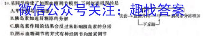 10.某同学构建了如图血两节模型,下列叙述错误的是A.甲为胰岛B细胞F(-)饮套一血整升高·胰岛素分增加B.胰岛素加速肝糖原的分解C.胰岛素作用的结果会反过影响岛索的分D.图示直糖两节的方式有神经调节和激案调节