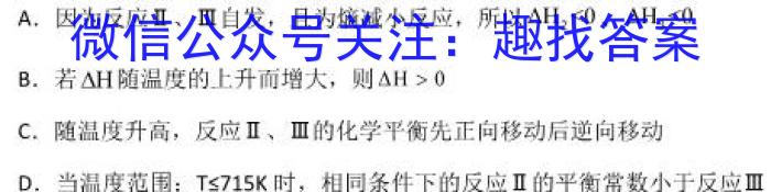 A.因为反应Ⅱ、Ⅲ自发,且为熵减小反应,所以H2<0、H30C.随温度升高,反应Ⅱ、Ⅲ的化学平衡先正向移动后逆向移动D.当温度范围:T≤715K时,相同条件下的反应Ⅱ的平衡常数小于反应Ⅲ