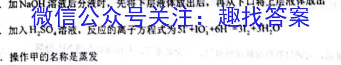 B.加NaOH溶液后分液时,先将下层液体放出后,再从下口将上层液体放出C.加H2SO4溶液,反应的离子方程式为SI+IO3^-+6H^+=3I2+3H2OD.操作甲的名称是蒸发