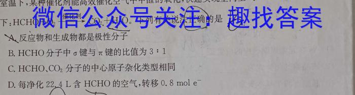 2.室温下,某种催化剂能高效催化空气中甲醛的氧化,快速实现室内空气的净化,发生的反应如下:HCHO+O2CO2+H2O。,下列有关说法正确的是BA反应物和生成物都是极性分子B.HCHO分子中σ键与π键的比值为3:1C.HCHO、CO2分子的中心原子杂化类型相同D.每净化22.4L含HCHO的空气,转移0.8mole^-
