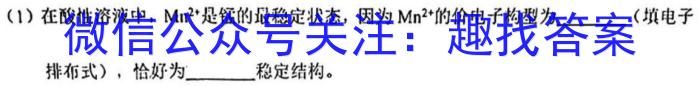 (1)在酸性溶液中,Mn^2+是锰的最稳定状态,因为Mn^2+*的价电子构型为(填电子排布式),恰好为稳定结构。