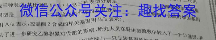 2)然而此种群或其他种群中从未出现过既喝酒易醉又喝酒脸红的个体,请解释可能的原因是。100所所名(3)一只易野生型猕猴杂交,子一代都表现为野生型,子一代相互交配,子二代出9:3:4,现三种表型,其比例是9:3:4,这三种表型分别是,易醉猕猴本的基因型是,子二代脸红的个体的基因型是(控制酶1合成的相,易醉猴条本的基A/aB/b用A/a表示,控制酶2合成的相关基因用B/b表示)。控制酶1合成的相关基因