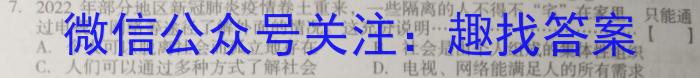 7.2022年部分地区新冠肺炎**卷士重来些隔离的人不得不“宅”在家里,只能通】A.个人可以脱离社会而孤立地存在B.社会是由个人组成的集体性组织C.人们可以通过多种方式了解社会D.电视、网络能满足人的所有需求
