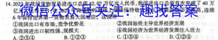 14.2022年我国货物贸易进出口总值42.07万亿元人民币,我国进出口总值首次突破了40万亿元人民币美口,在2021年高基数的基础上续保持稳定增长,规模再创历史新高,连续6年保持世界第一货物贸易大国地位。这说明①我国出口有市场,竞争优势足②我国始终主导世界经济发展我国进出口韧性强、规模大④我国经济为世界经济发展注人活力A.②③④B.②③C.①④D.①②④