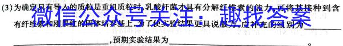 (3)为确定只有导入的质粒是重组质粒时,乳酸杆菌才具有分解纤维素的能力,可将其接种到含有纤维素和刚果红的固体培养基上,为了使实验结果更具说服力,应补充的组别为,预期实验结果为。
