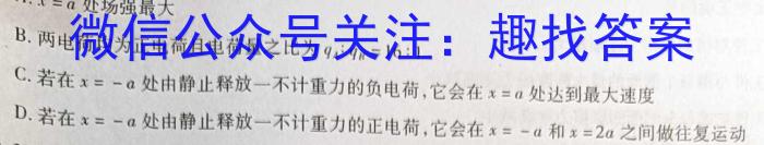 B.两电荷均为正电荷且电荷量之比为q4=16:1qA:qB=16:1C.若在x=-a处由静止释放一不计重力的负电荷,它会在x=a处达到最大速度D.若在x=-a处由静止释放一不计重力的正电荷,它会在x=-a和x=2a之间做往复运动