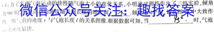 (4为了发现气泡运动的快慢随气泡大小的变化关系,小明通过测算作出了三组实验,倾角为90时,气泡运动的速度随气泡长度的增大而个.倾角为15^时,请在图-22中大致作出组气泡的速度n与气泡长度1的关系图像.根据数据可知,当45时,气泡)速度最快.