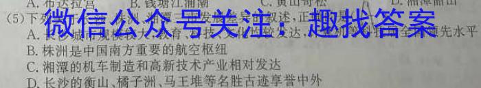 (5)下列关于长沙、株洲、湘潭三市发展差异的叙述,正确的是A.布达拉宫宫B.钱塘江涌潮C.黄山奇松D.湘潭韶山AA.长沙城市规模较大,教育、科技、文化均较发达,计算机等科技居全国领先水平B.株洲是中国南方重要的航空枢组C.湘潭的机车制造和高新技术产业相对发达D.长沙的衡山、橘子洲、马王堆等名胜古迹享誉中外