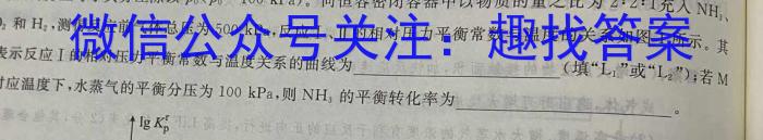 。③aia3,(3)已知:K表示相对压力平衡常数,其表达式是在浓度平衡常数表达式中,用相对分压代替浓度。气Kp^5NH3体的相对分压等于其分压除以p(p=100kPa)。向恒容密闭容器中以物质的量之比为2:2:1充入NH,p0(p0=100kpa)。CO和H,测得反应前气体总压为500kPa,反应IⅡ的相对压力平衡常数与温度的关系如图1所示。其CO2H2,500kPa,中表示反应I对压力平衡常数与温度关系的曲线为,麻面(填L或”点对应温度下,水蒸气的平衡分压为100kPa,,则NH3