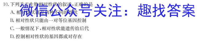 10.下列关于生物相对性状的叙述,正确的是A.相对性状就是两种不同的性状B.相对性状只能由一对等位基因控制C.一般情况下,相对性状能遗传给后代D.控制相对性状的基因都成对存在
