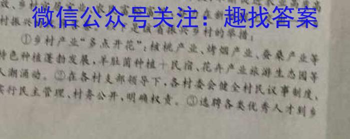 20.阅读下列材料,回答问题,材料某省大力打造多衬振兴样板,不新促进农业高质高、乡村居宜业、民富裕富足,奋力在新征程上交出一。村振的优异卷,以下是该省振跨乡的攀接,①乡村产业“多点升花”:核桃产业,烤烟产业、安产业等色种植蓬勃发展,羊肚菌种植十民宿、花卉产业旅海生杰国人潮涌动,在各村支部领导下,各村委会健全村民议事制,实行民主管理、村寿公开,明确权责,选聘各类优秀人才。(1)拟题,结合道德与法治课所学观点,自拟一个能概括材料主要内容的题目,(3分)题目:
