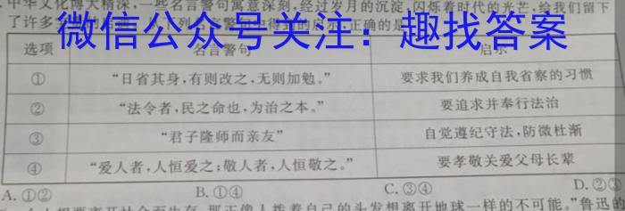 D.③④4.中华文化博大精深,一些名言警句寓意深刻,经过岁月的沉淀,闪烁着时代的光芒,给我们留下月了许多宝贵的启迪。从下列名言警句中得到的启示,正确的是A.①②B.①④C.③④D.②③
