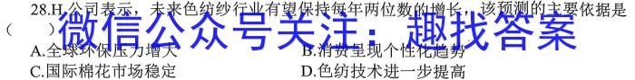 28.H公司表示,未来色纺纱行业有望保持每年两位数的增长,该预测的主要依据是()A.全球环保压力增大B.消费呈现个性化趋势C.国际棉花市场稳定D.色纺技术进一步提高