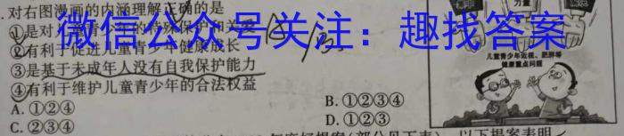 7.对右图漫画的内涵理解正确的是力量①是对儿童青少年的特殊保护和关爱有利于促进儿童青少年健康成长A/3③是基于未成年人没有自我保护能力儿童青少年近视、④有利于维护儿童青少年的合法权益A.①②④B.①②③④C.②③④D.①②③