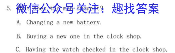 5.What does the man suggest?A.Changing a new battery.B. Buying a new one in the clock shop.C. Having the watch checked in the clock shop.