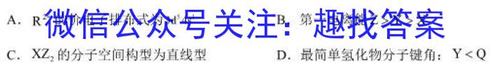 A.R^2+的价电子排布式为3d^54s^1B.第一电离能Z>Y>XC.XZ2的分子空间构型为直线型D.最简单氢化物分子键角:Y<C