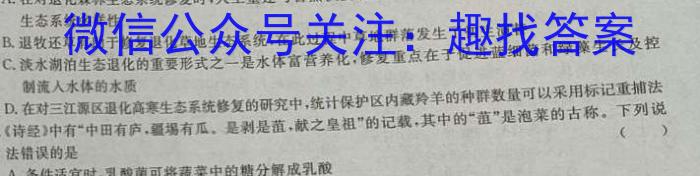 12.人们会思考与大自然的关系,并考量生物多样性持续丧失和生态系统退化对人类生存和自身福祉产生的深远影响。下列关于生态系统铬复的叙述正确的是)A.在对退化森林生态系统修复时,人工重建与自然恢复相比,人工造林迅速,可以在短时间内实现生态系统多样性B.退牧还草有助于修复退化草地生态系统,在此过程中草地群落发生了初生演替C.淡水湖泊生态退化的重要形式之一是水体富营养化,修复重点在于促进蓝细菌和绿藻生长及控制流入水体的水质