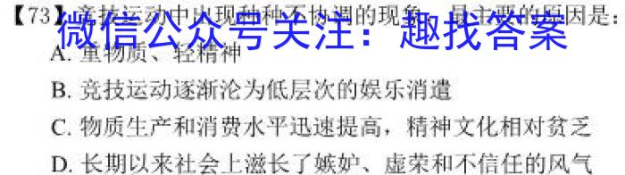 【73】竞技运动中出现种种不协调的现象,最主要的原因是:A.重物质、轻精神B.竞技运动逐渐沦为低层次的娱乐消造C.物质生产和消费水平迅速提高,精神文化相对贫乏D.长期以来社会上滋长了嫉妒、虚荣和不信任的风气