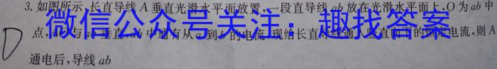 3.如图所示,长直导线A垂直光滑水平面放置,一段直导线ab放在光滑水平面上,O为ab中点,AO与ab垂直,ab中通有从a到b的电流,现给长直导线通入竖直向下的恒定电流,则A通电后,导线ab