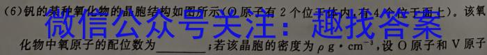 (6)钒的某种氧化物的晶胞结构如图所示(O原子有2个位于体内,有4个位于面上)。该氧化物中氧原子的配位数为;若该晶胞的密度为gcm^-3,设O原子和V原子的半径分别为r1nm和和r,则该品胞的空间利用率为利用率为.(设阿伏加德罗常数的值为NA)