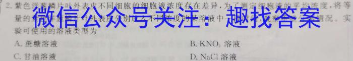 2.紫色洋葱鳞片叶外表皮不同细胞的细胞液浓度存在差异,为了测定细胞液的平均浓度,将等量的紫色洋葱鳞片叶外表皮分别放入不同浓度的某溶液中一段时间,观察质壁分离情况。实验可使用的溶液类型为A.蔗糖溶液B.KNO3溶液C.甘油溶液D.NaCl溶液