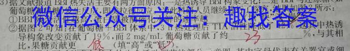 (3)据文献报道BI热失活主要有两方面原因:一是热诱导BBI构象变化;二是BBI与还原糖(如葡萄糖和果糖)发生反应,即美拉德反应。为此科研人员继续进行了探究,结果如图2所示:①BBI残余活性越高,蛋白质被酶催化水解的速率越(填“快”或“慢”)。②据图2可知:在葡萄糖+BBI体系中,3h热处理后TIA活性降低了4.这其这其中热诱导构象改变贡献了19%,而2mg/mL葡萄糖贡献了约比,果糖贡献更低(填“高”或“低”)。23%,与其相