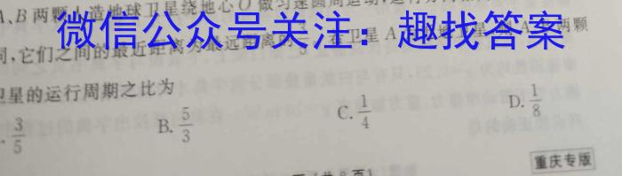 6.A、B两颗人造地球卫星绕地心O做匀速圆周同,它们之间的最近距离为最远距离的35。若卫星A为近地卫星,则A、B两颗颗A.35卫星的运行周期之比为C.14D.18B.53重庆专版