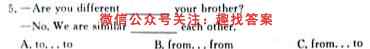 5.-Are you different your brother?____-No. We are similar each other.____A.to…to B.from…from C.from…to