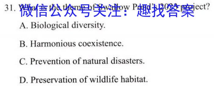 31.What is the theme of Swallow Pond’s 2023 project?A.Biological diversity.B.Harmonious coexistence.C.Prevention of natural disasters.D.Preservation of wildlife habitat.