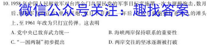 10.1958年中国人民解放军对台湾金门岛国民党的军事目标实施第一次大规模炮击,数月后,解放军方面宣布:单日开炮,双日不开炮。一年后,双方只将炮弹打在无人的滩头上,至1961年改为只打宣传弹。这表明A.已放弃武力统一B.海峡两岸保持联系的重要性C.“”初步提出D.两岸交往的坚冰逐渐被打破