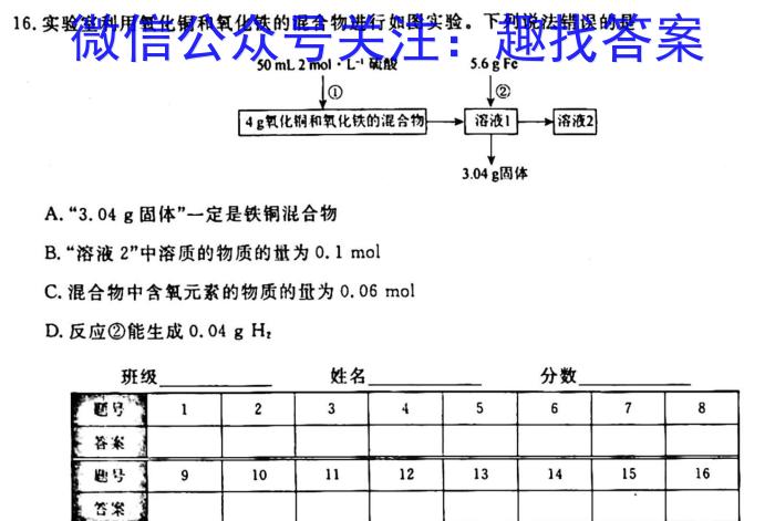 2023届先知模拟卷(三)新教材化学试卷答案,我们目前收集并整理关于2023届先知模拟卷(三)新教材化学得系列试题及其答案,更多试题答案请关注微信公众号:趣找答案/直接访问www.qzda.com(趣找答案) 2023届先知模拟卷(三)新教材化学试卷答案 以下是该试卷的部分内容或...