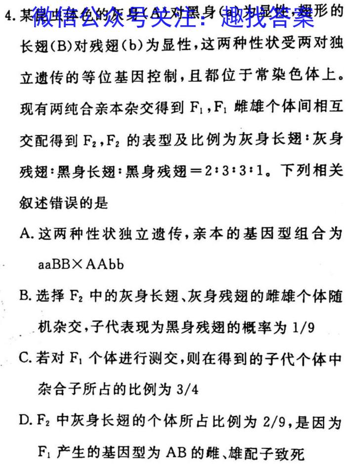 金考卷2023年普通高等学校招生全国统一考试 全国卷 预测卷1(一)生物试卷答案试卷答案,我们目前收集并整理关于金考卷2023年普通高等学校招生全国统一考试 全国卷 预测卷1(一)生物试卷答案得系列试题及其答案,更多试题答案请关注微信公众号:趣找答案/直接访问www.qzda.c...