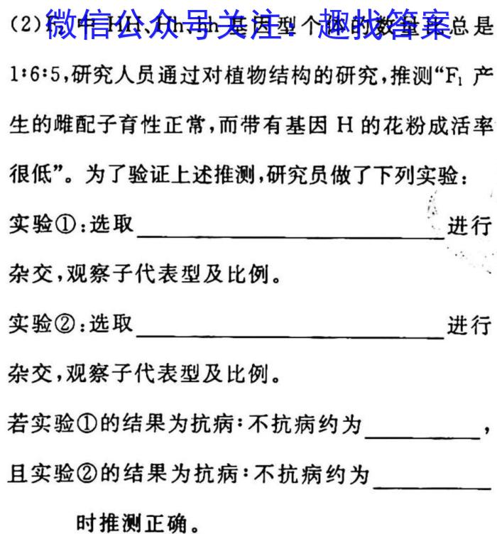 2023届先知模拟卷(四)新教材生物试卷答案试卷答案,我们目前收集并整理关于2023届先知模拟卷(四)新教材生物试卷答案得系列试题及其答案,更多试题答案请关注微信公众号:趣找答案/直接访问www.qzda.com(趣找答案) 2023届先知模拟卷(四)新教材生物试卷答案试卷答案 ...