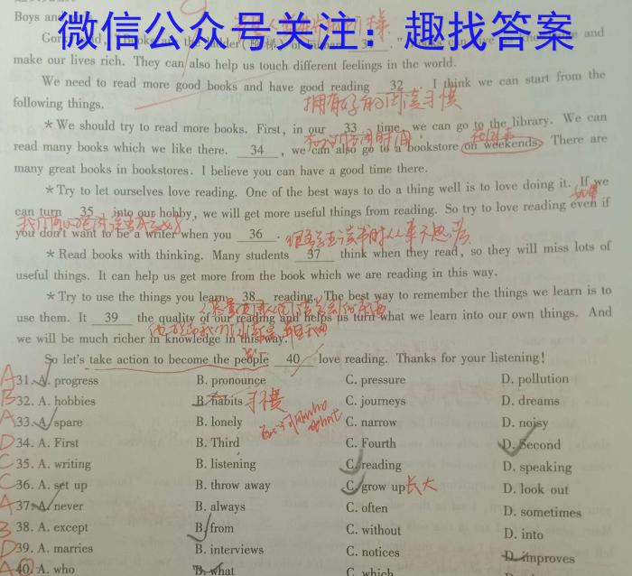吉林省2023届高三模拟考试(内用二)英语试题试卷答案,我们目前收集并整理关于吉林省2023届高三模拟考试(内用二)英语试题得系列试题及其答案,更多试题答案请关注微信公众号:趣找答案/直接访问www.qzda.com(趣找答案) 吉林省2023届高三模拟考试(内用二)英语试题试卷...