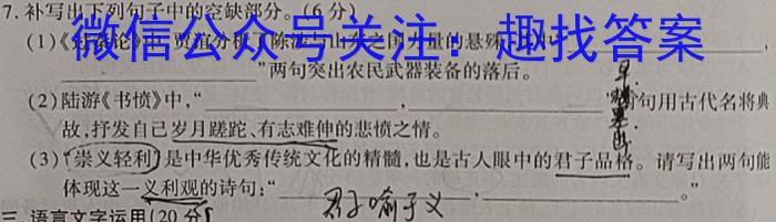 山东省聊城市2024届高二第一学期期末教学质量抽测语文试卷答案,我们目前收集并整理关于山东省聊城市2024届高二第一学期期末教学质量抽测语文得系列试题及其答案,更多试题答案请关注微信公众号:趣找答案/直接访问www.qzda.com(趣找答案) 山东省聊城市2024届高二第一学期...