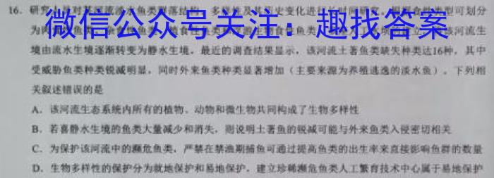江淮名卷·2023年安徽中考押题卷(二)生物试卷答案试卷答案,我们目前收集并整理关于江淮名卷·2023年安徽中考押题卷(二)生物试卷答案得系列试题及其答案,更多试题答案请关注微信公众号:趣找答案/直接访问www.qzda.com(趣找答案) 江淮名卷·2023年安徽中考押题卷(二...