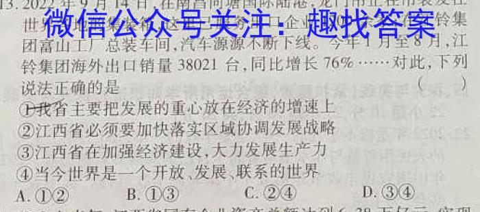 江西省2023年学考水平练*(一)地.理试卷答案,我们目前收集并整理关于江西省2023年学考水平练*(一)地.理得系列试题及其答案,更多试题答案请关注微信公众号:趣找答案/直接访问www.qzda.com(趣找答案) 江西省2023年学考水平练*(一)地.理试卷答案 以下是该试卷...