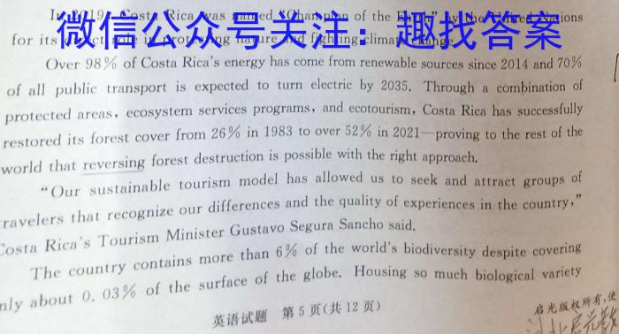 2023届湖南省普通高中学业水平合格性考试测试模拟卷(一)英语试题试卷答案,我们目前收集并整理关于2023届湖南省普通高中学业水平合格性考试测试模拟卷(一)英语试题得系列试题及其答案,更多试题答案请关注微信公众号:趣找答案/直接访问www.qzda.com(趣找答案) 2023届...